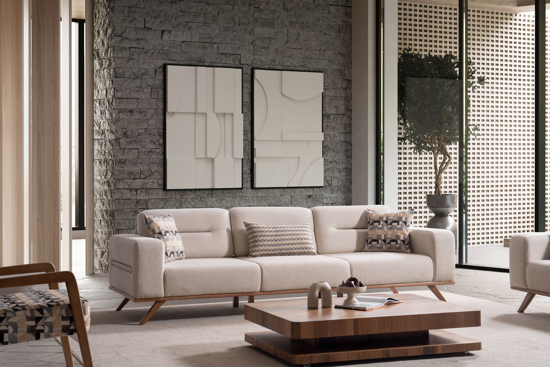 Ohri Koltuk Takımı, zarif tasarımı ve pratik kullanımıyla evinize şıklık katıyor. Sırt kısmındaki DSS mekanizması sayesinde kolayca yatak olabilen bu koltuk takımı, hem misafirlerinizi ağırlarken hem de günlük kullanımda konfor sunar. Modern ve fonksiyonel bir tasarım arayanlar için ideal bir tercih.